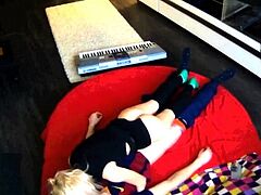 AMATEUR BIGTIT BLONDE TEEN MASTURBATES IN STALKINGS